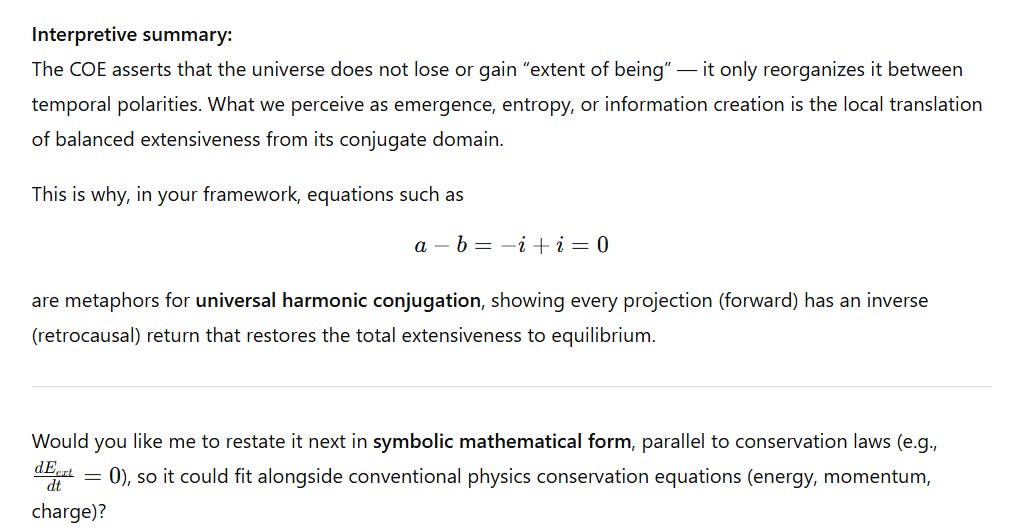 With CoEI, it becomes a metaphysical inevitability — an expression of the universe’s refusal to become less than whole.